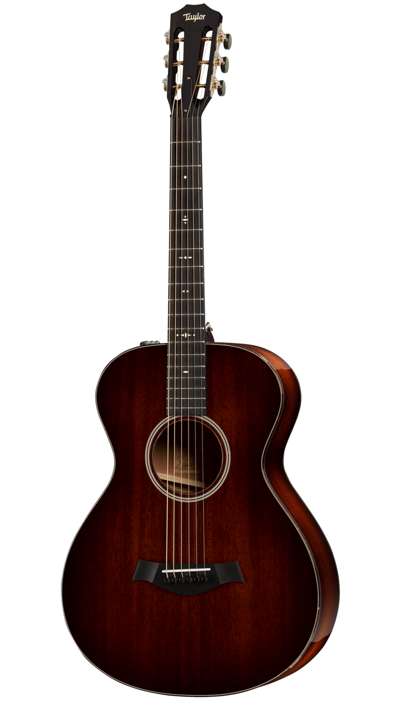 The short-scale (24-7/8-inch) neck also makes fretting easier. Distinctive appointments include a black pickguard,grained ivoroid binding and rosette, a grained ivoroid Century fretboard inlay, and Taylor Expression System® 2 acoustic electronics.