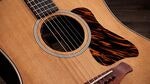 Modellen präglas av tydliga visuella referenser till Taylors Gold Label Collection, med stall i honduranskt rosenträ, Cream Crest-inlägg, krämfärgad binding och rosett samt helblank finish. Ett firestripe-plektrumskydd kompletterar det klassiska Dreadnought-uttrycket.