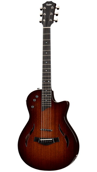 Distinctive T5z features include a more compact body than the original T5, a 12-inch fretboard radius, and jumbo frets, which add up to a fast, fluid playing experience that makes string bends fun. Like the T5, the T5z is equipped with a three-pickup configuration of an acoustic body sensor, a concealed neck humbucker, and a visible bridge humbucker, plus five-way switching and onboard tone controls, giving players an incredibly versatile electric/acoustic guitar. Appointments include small diamond inlays and nickel hardware. The guitar ships in a Taylor deluxe hard shell case.