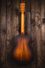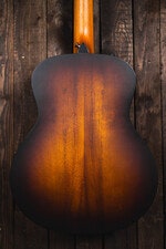 Gitarren har en massiv koa-topp som bidrar till tydlig projektion och klar artikulation. Baksida och sidor är byggda i laminerad koa, vilket ger stabilitet och ett konsekvent ljud i ett portabelt format. Den matta finishen lyfter fram koa-träets naturliga ådring utan att kännas påträngande.
