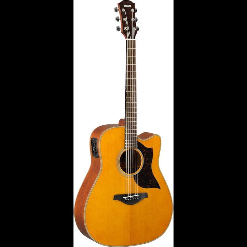 The A1M, traditional western body cutaway guitar, features solid sitka spruce top with scalloped bracing and mahogany back and sides. Yamaha's original SRT piezo pickup ensure solid plugged-in performance.