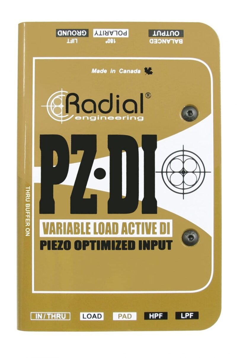 The PZ-DI is a high-performance specialized active direct box designed to accommodate acoustic and orchestral instruments, with a selectable input impedance that can accommodate magnetic pickups or piezo transducers, and a variable low-cut filter.