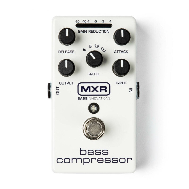 Take your favorite studio compressor to the stage with the MXR M87 Bass Compressor. A complete array of controls,_ Attack, Release, Ratio, Input, and Output,_ makes it easy to fine-tune your sound, from subtle peak limiting to hard squashed compression effects. Its CHT"! Constant Headroom Technology gives you plenty of headroom and clear performance. This totally transparent compressor allows your full dynamic range to shine through until your signal reaches the compression threshold, which is indicated by the ten, highly visible gain-reduction status LEDs. It's all packed into a durable, lightweight aluminum-housing pedal that's the size of a Phase 90.