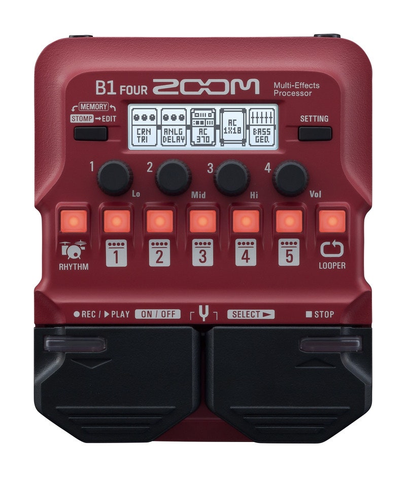 - Pushbuttons: Rhythm, 5 effect slots, Looper, Setting, Memory