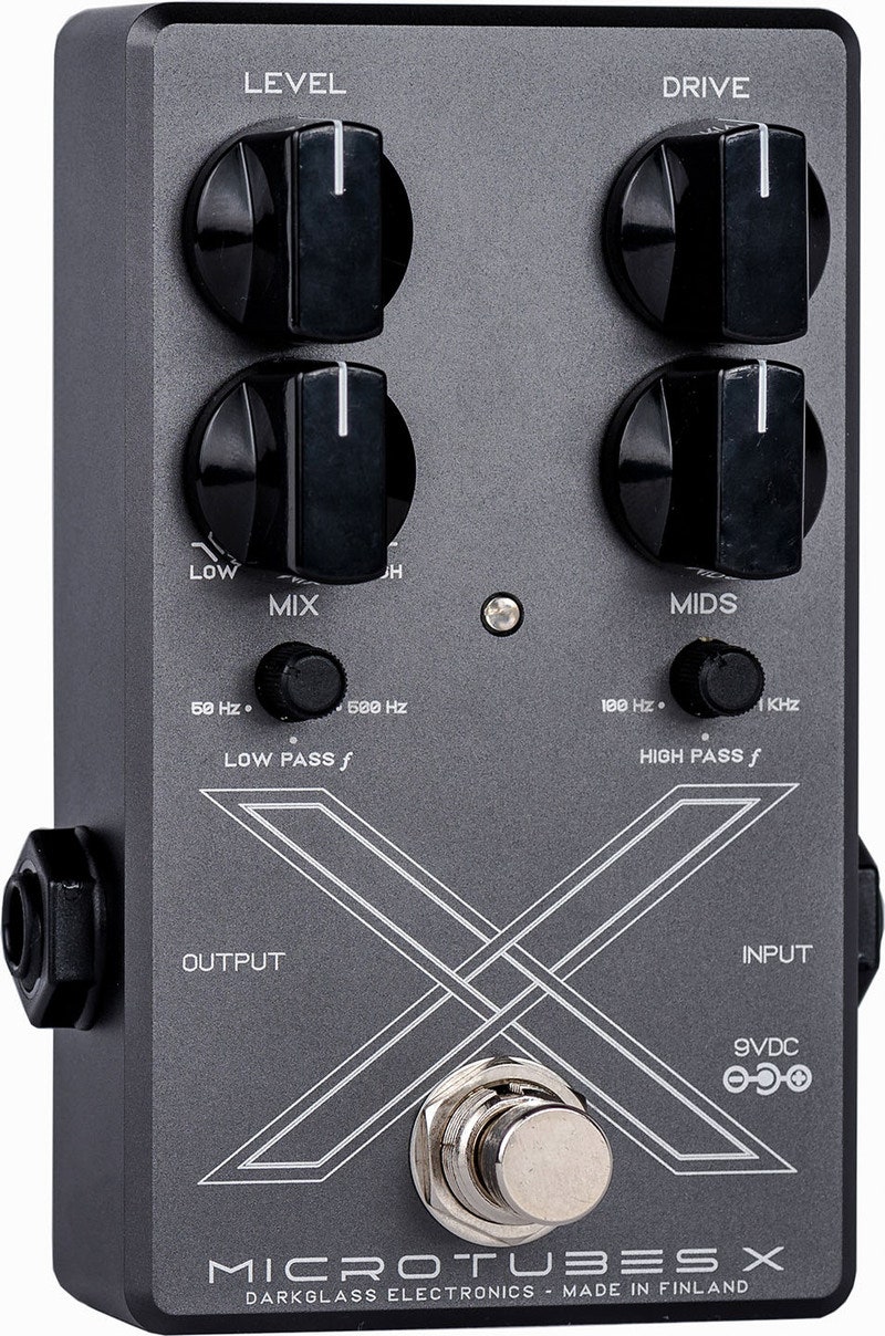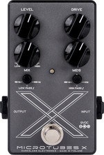 The Microtubes X is our solution to that problem in a very compact form: The signal is split by two variable low-pass and high-pass filters at the very very beginning. The high-pass signal (mostly mids and treble) is distorted using CMOS circuitry, just like our older Microtubes pedals.