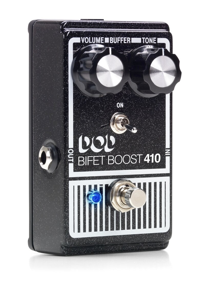Bifet Boost 410 har dessutom bestyckats med en buffer-förstärkare – en mycket användbar funktion i de flesta gitarriggar. Den kompenserar helt enkelt för de signalförluster (pga impedans) som kan uppstå om man splittat signalen, använder väldigt långa kablar eller har väldigt många effektpedaler utan inbyggda buffer-förstärkare (som hos många vintage-pedaler). Tonen kan i dessa fall börja kännas trött och diskant-lös. Buffer-förstärkaren kan då återupprätta signalens nivå och på så sätt får du tillbaka det du tappat på vägen i signalkedjan.