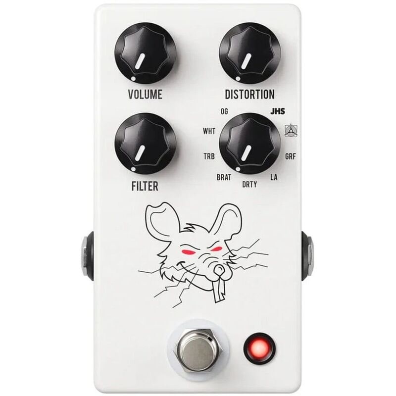 JHS PackRat White är en distpedal som samlar över 40 års utveckling av RAT-inspirerade kretsar i en enda enhet. Pedalen använder ett avancerat switching-system som växlar mellan nio olika analoga kretsar, där varje läge återskapar en specifik historisk variant med originalkaraktär. Resultatet är ett brett spektrum av gain, från overdrive till distorsion och fuzz.