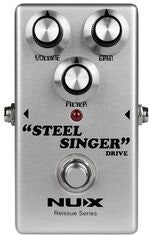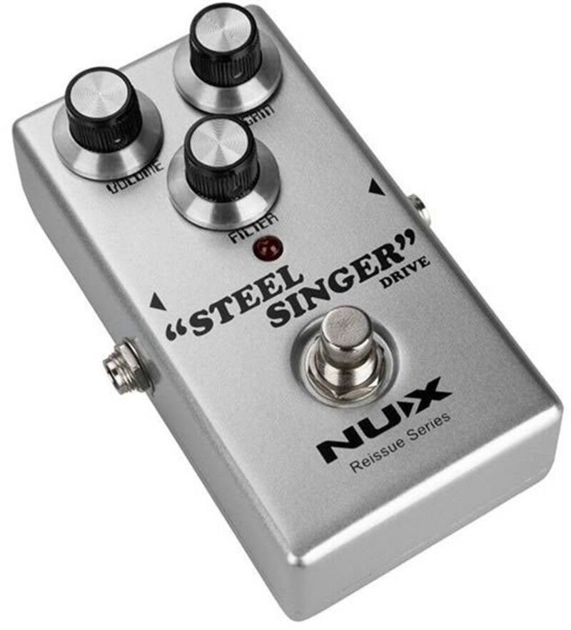 NUX Steel Singer Drive är en nyutgiver analog effektpedal som erbjuder overdrive i karaktär av de kända kaliforniska botique rörförstärkarna från 70-talet. Den ger en jämn high-end och härlig mid-range. Den går att använda som huvudsaklig overdrive eller i samband med en gitarrförstärkare.