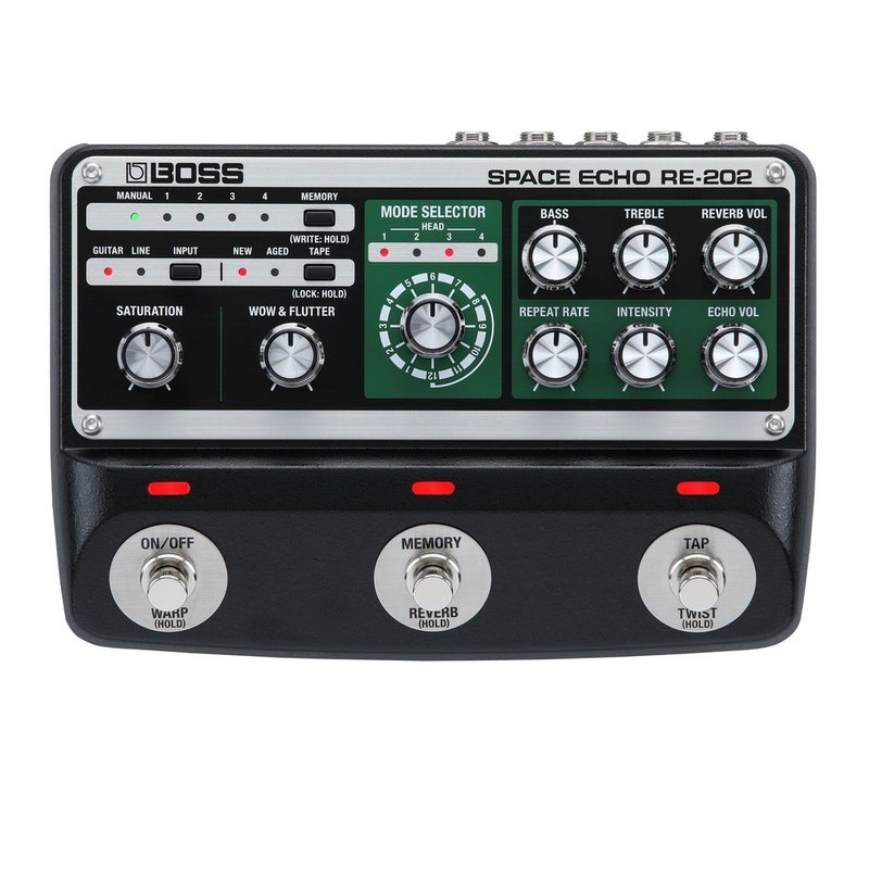 Introduced in 1974, the Roland RE-201 Space Echo stands among the most legendary and sought-after effect units ever produced. This tape-based classic remained in production for over 14 straight years, and its distinctive rhythmic echo sounds, warm character, and highly playable sonic quirks still inspire musicians, producers, and audio mixers over four decades on. Backed by intensive R&D and our latest innovations, the RE-202 faithfully delivers the authentic sound and behavior of the Space Echo like never before. Built by the company that designed the original, this advanced pedal captures the RE-201’s magic in flawless detail, from the magnetic tape and motor properties to the vibrant spring reverb and colorful preamp circuit. And to take things even further, we’ve expanded the vintage Space Echo experience with lots of new features tuned for today’s music.