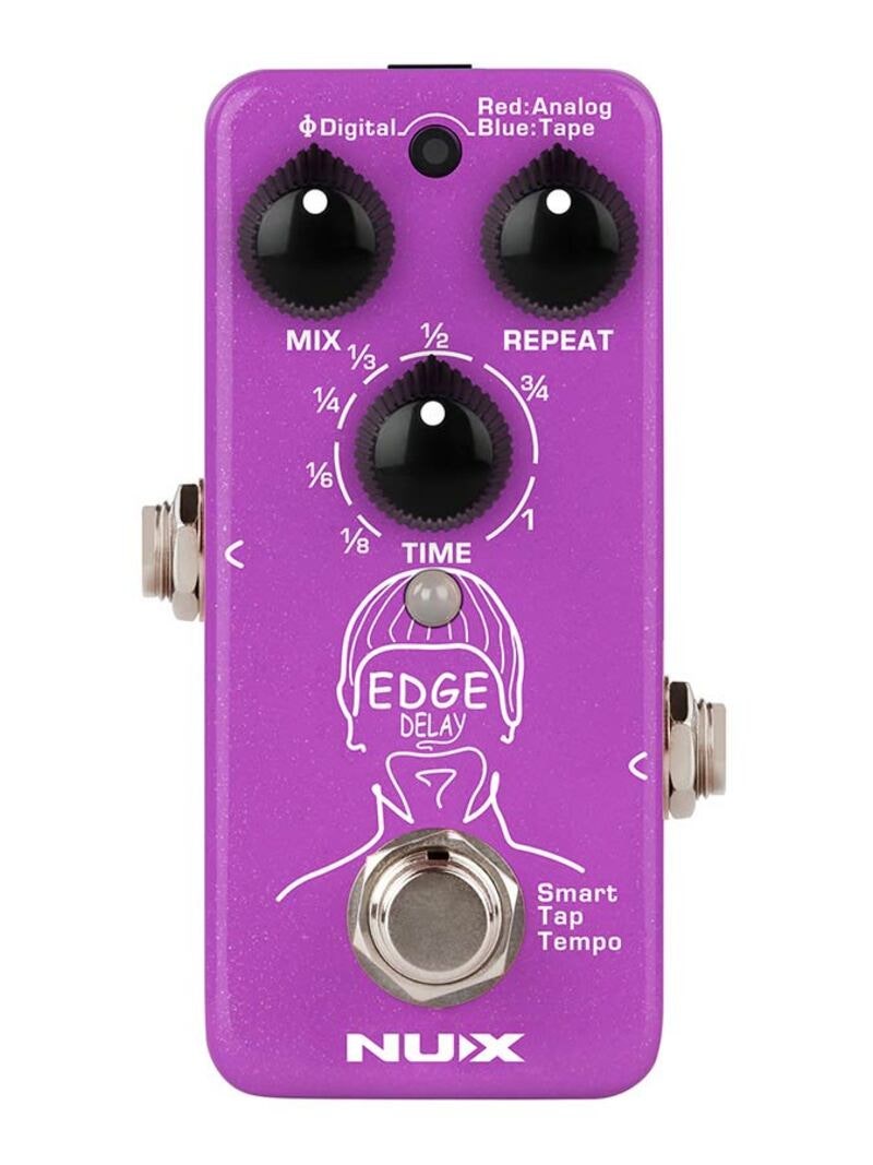 The Edge delay (NDD-3) is a mini delay pedal with 3 different delay types including Phi Digital Delay, Analog Delay and Tape Echo. You can switch delay types by pressing and holding the footswitch.