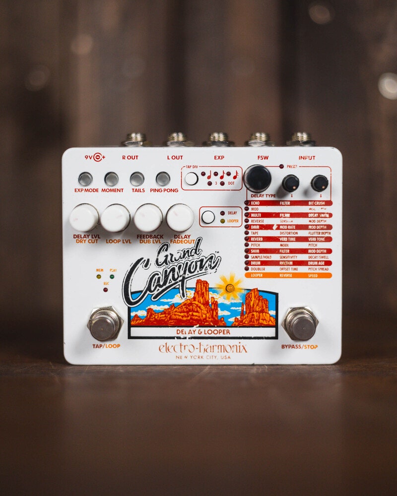 Electro-Harmonix Grand Canyon är en avancerad delay- och looper-pedal som kombinerar ett brett utbud av delayeffekter med en flexibel och kraftfull looperfunktion. Modellen är framtagen för gitarrister och musiker som behöver både kreativ variation och pålitlig funktion i ett kompakt pedalformat.Översikt och funktion