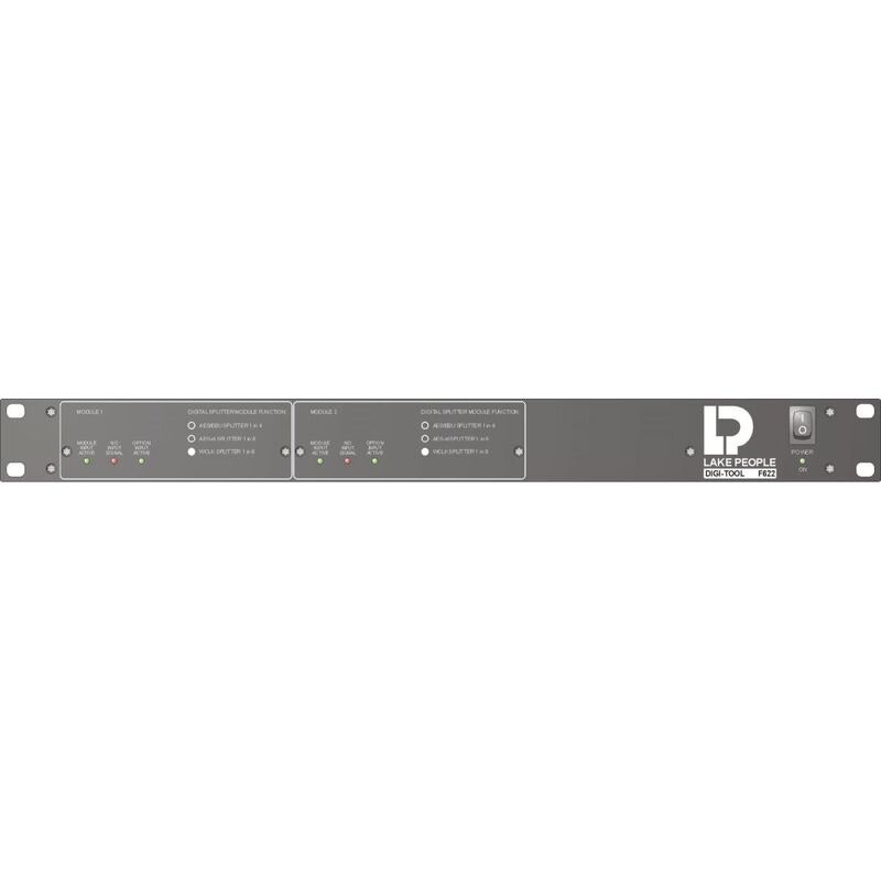 Lake People DIGI-TOOL F622 är en digital distributionsenhet som hanterar Word Clock- och AES-id-signaler med precision. Den är anpassad för professionella ljudmiljöer där flera enheter behöver synkroniseras via digitala signaler med bibehållen signalintegritet.
