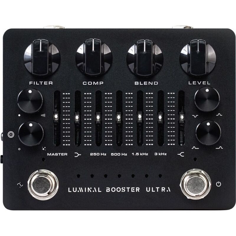 Luminal Booster Ultra är en kombinationspedal för bas som sammanför kompression, boost och EQ i ett enhetligt format. Den bygger vidare på Darkglass Harmonic Booster och lägger till parallell kompression med justerbart frekvensomfång samt möjlighet att blanda mellan komprimerat och rent ljud.
