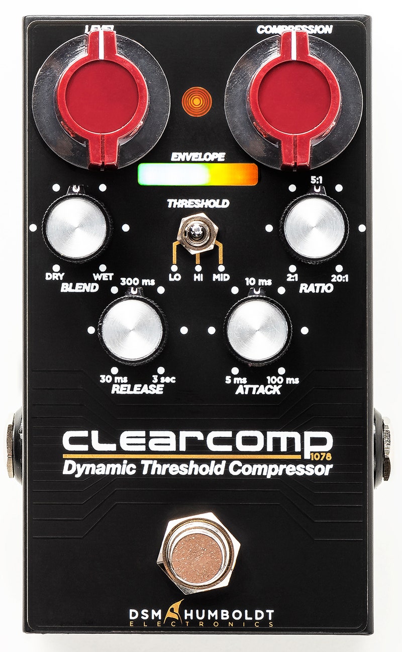Kompressor-pedal med super-transparent kompression, unik Dynamic Threshold Topology, extremt lågt brus och stort dynamiskt omfång. 5-stegs LED-mätare som ger visuell feedback på hur kompressorn jobbar. 9-18V DC