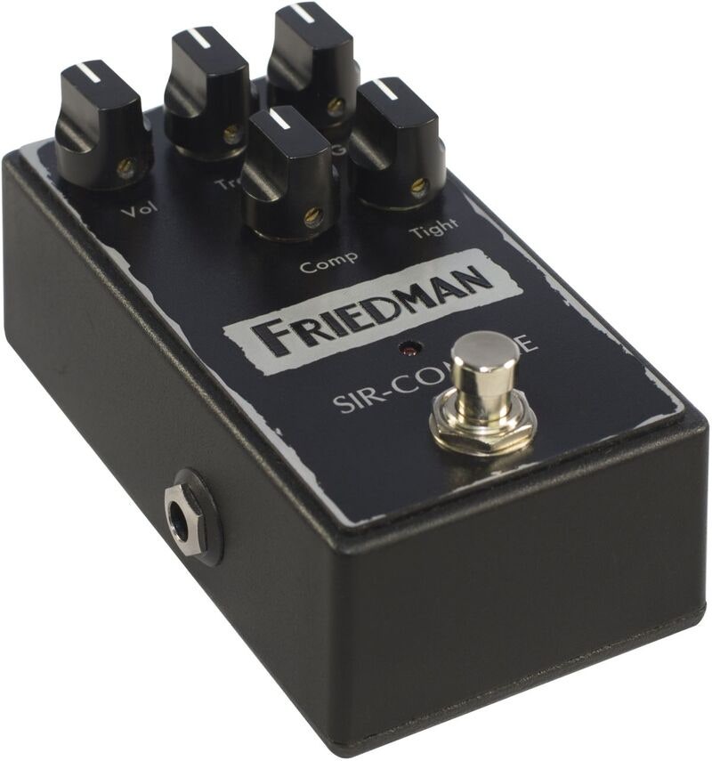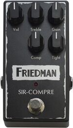 Sir Compre är en kompressor och en drivepedal i ett. I grunden är det en "1knob compressor" som verkligen är lätt att jobba med. Vrid upp Comp-ratten så komprimerar den... enkelt! Men den har dessutom en Tight ratt som skär i basen för att inte bli för bumlig, De tre rattarna längst upp jobbar som en drivepedal med Volym Ton och Drive.