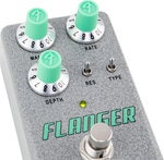 Originally achieved by physically pushing the tape flange on a reel-to-reel recording device, flanging is one of the earliest guitar-effects. The Hammertone™ Flanger delivers dramatic, rushing jet stream waves and subtler, swirling tendrils of modulation. Pedal board-friendly top-mounted in & out jacks and true bypass footswitch mean it will integrate seamlessly into your rig.