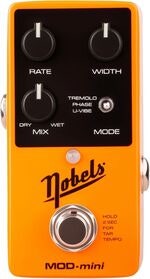 German Nobels MOD-mini är en kompakt stereomodulationspedal som samlar flera klassiska modulationseffekter i ett litet format. Pedalen erbjuder intuitiv växling mellan effekter och flexibla anslutningsmöjligheter för användning både i mono och stereo.