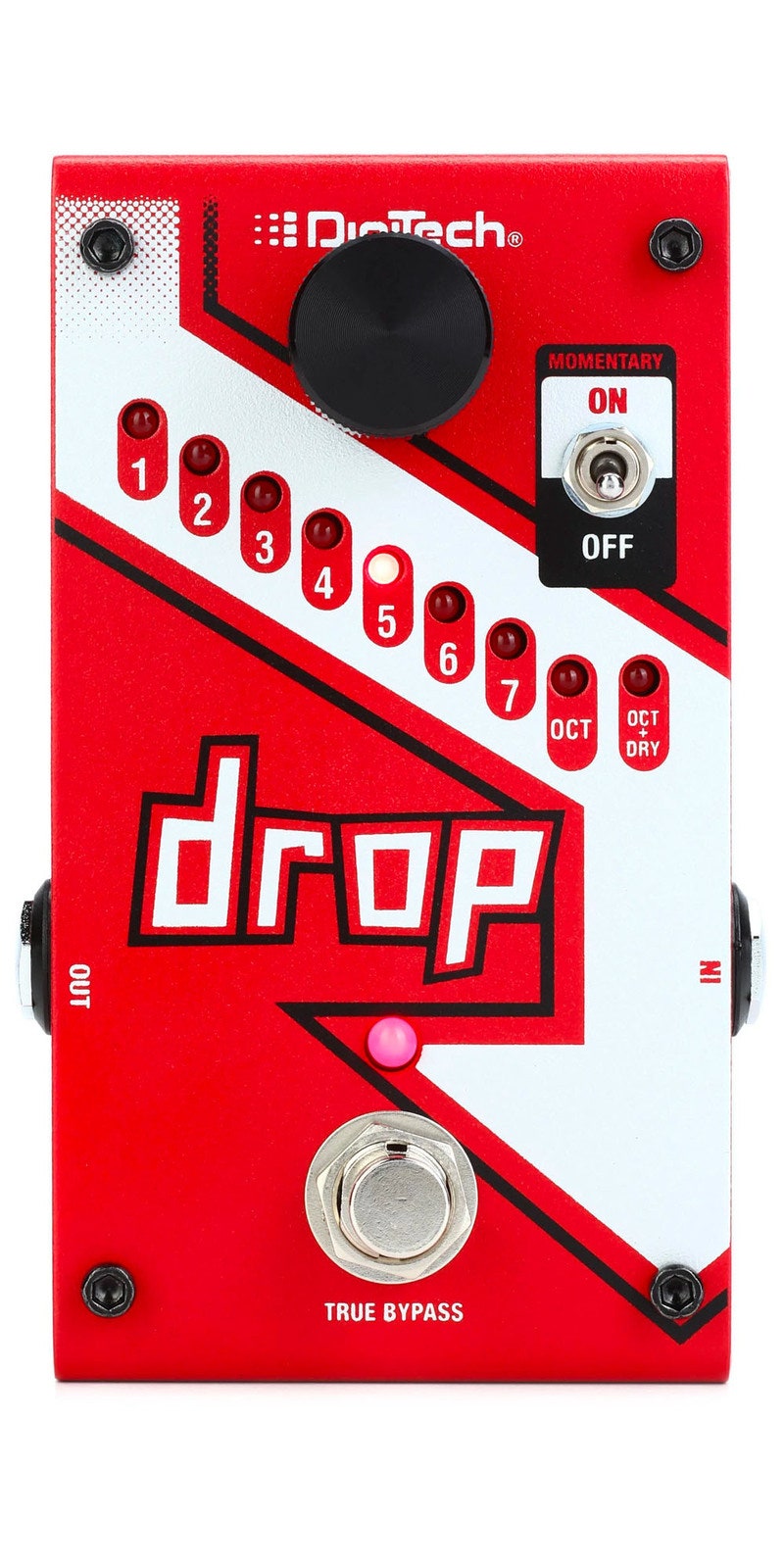Behöver du snabbt sänka tonarten men vill slippa krånglet med att stämma om din gitarr eller bas? Digitech Drop låter dig stämma ner ditt instrument i upp till 7 halvtonssteg (en kvint) och ger dig dessutom möjligheten att dyka ner en hel oktav. Tekniken som arbetar polyfoniskt för att trigga på allra bästa sätt är tagen direkt från Whammy-DT.