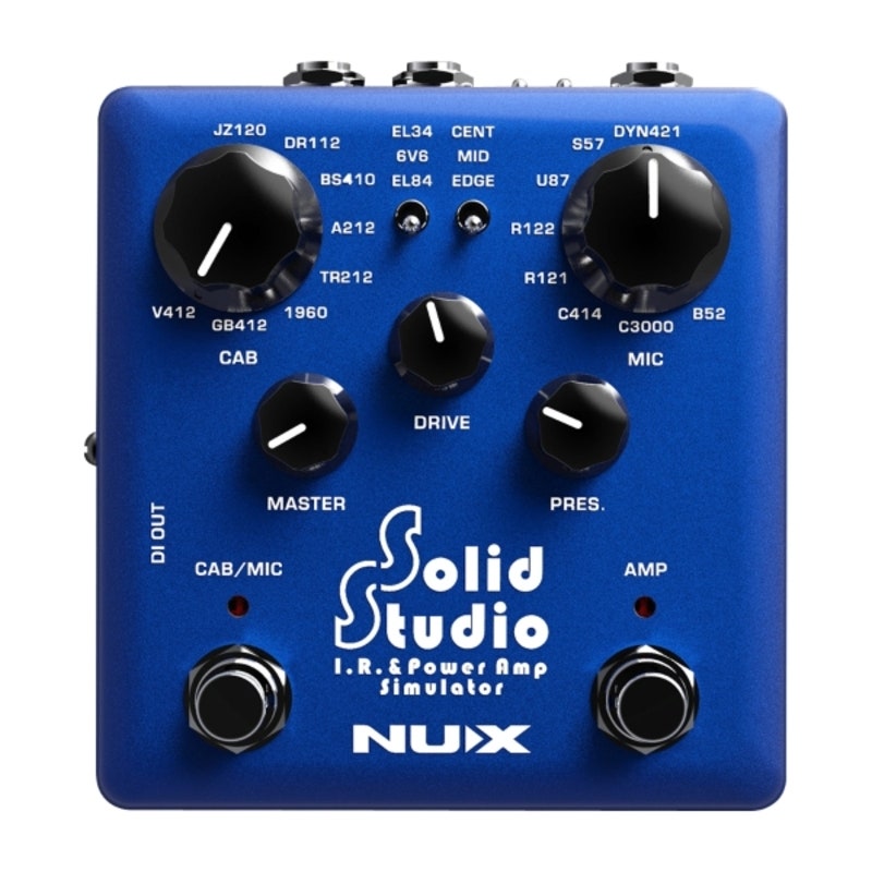 NUX Verdugo Series. Solid Studio är en IR Loader med inbyggd simulering av kabinett, mikrofoner och mikrofonpositionering, samt slutstegssimulator med 3 förstärkarrör och förstärkarkontroller. Utrustad med USB för att ladda in externa IR filer, mjukvarukontroller och uppdateringar.