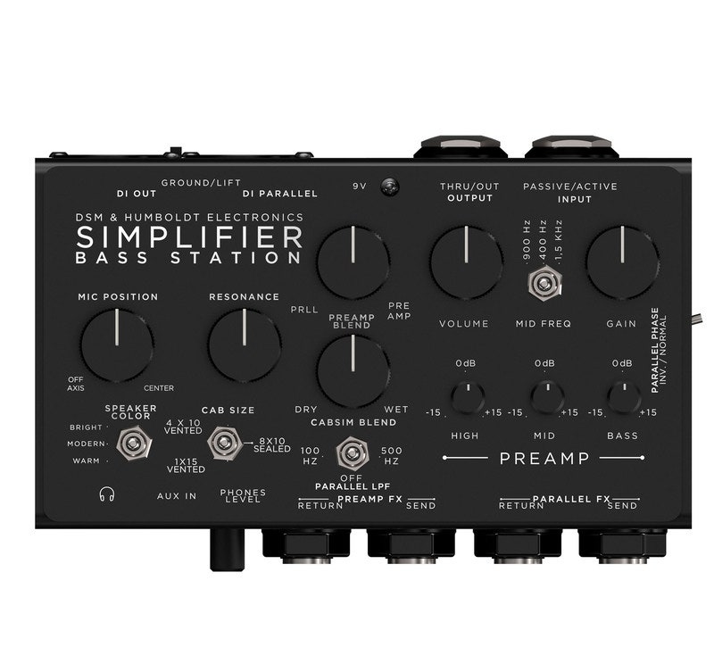 Simplifier Bass Station är en helt analog ”Zero Watt Bass Amp” som får plats på din pedalbräda. Preampen är baserad på industristandarden Ampeg SVT ®, en förstärkare som dyrkas för sin karaktär, artikulation och mångsidighet. En 3-bands EQ med semi-parametrisk mellanregisterkontroll samt lågpassfilter, två effektreturer, den ena parallell och du kan välja mellan tre olika emulerade kabinett, 8x10”, 4x10” och 1x15”.