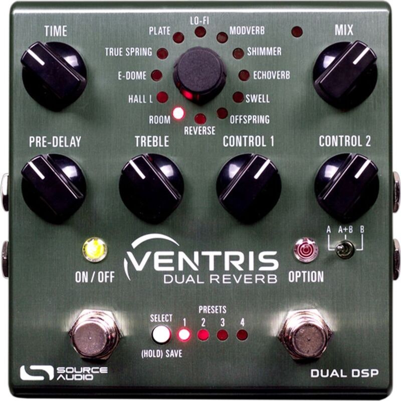 The supremely intelligent Ventris Dual Reverb features two completely independent 56-bit reverb processors, essentially housing a matching pair of high-powered reverb pedals in a single box. The Ventris’s powerful dual processing architecture gives the pedal some serious advantages including massive processing muscle, adjustable preset spillover time, and the ability to create dual reverb effects.