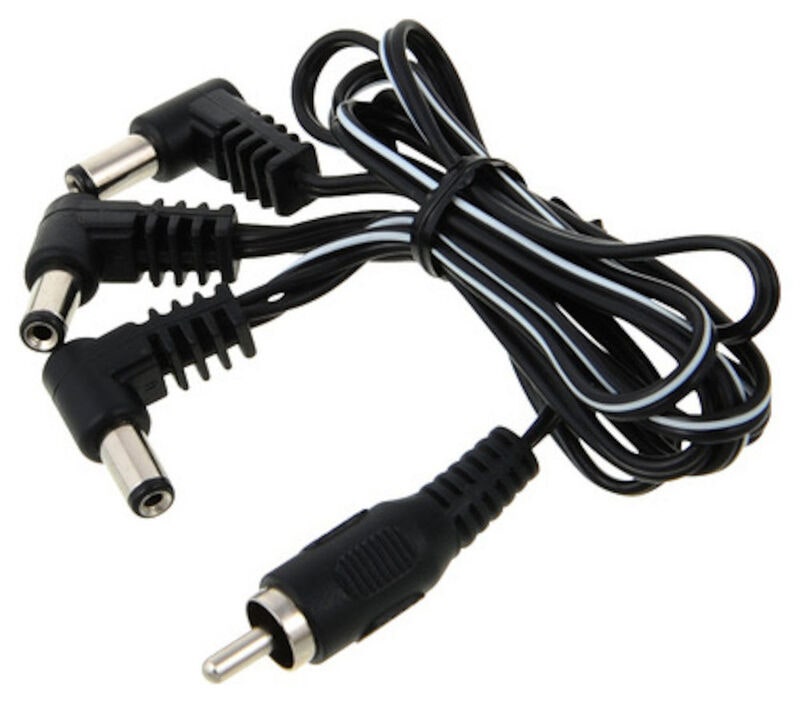 This Flex cable makes it possible to power three pedals using one outlet of the power supply. You need to make sure that the three pedals can all be powered by the same voltage and that they all use the most common 5.5/2.1mm centre negative DC-plug (BOSS standard). The good thing about this daisy chain cable is that you have more length in between the DC-plugs (30cm) which gives more design freedom when placing the effects on your pedal board. The first plug on the cable is 50cm from the power supply. Note: the daisy chain Flex cable has all three DC-plugs connected in parallel to the RCA plug which goes into the power supply?s outlet. To be on the safe side we recommend using the daisy chain Flex with analogue pedals only. This is to avoid a digital pedal introducing noise into your guitar signal when being powered in a parallel connection with a simple analogue pedal.
