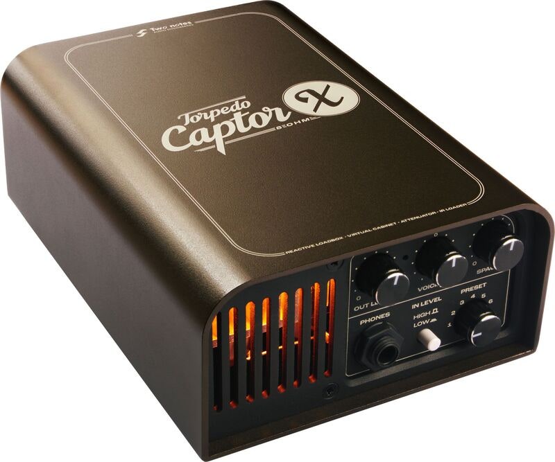 Den nya Captor XSE är en extremt kompakt Reaktiv Loadbox, Attenuator, Cab Sim, IR Loader och Stereo Expander som kan styras via mjukvara antingen på datorn eller i telefon etc. Utklädd i en vintage-inspirerad färgsättning i begränsad upplaga, tillsammans med en helt ny Anniversary Edition DynIR-kabinett samling, Captor X SE representerar toppen av Two notes 15-åriga banbrytande, moderna loadbox-teknik. Det är en kompakt reaktiv loadbox. Det är en rörförstärkare attenuator. Det är en uppmickad kabinett simulator. Det är en statisk IR-loader. Det är en stereoexpander. Den är packad med en rad Post FX i studioklass för att justera din ton till perfektion. Expertkonstruerad för att leverera utmärkande ljud för hem-, live- och studioanvändning, Captor X SE ger dig alla verktyg att skapa de ljuden som definerar just dig.