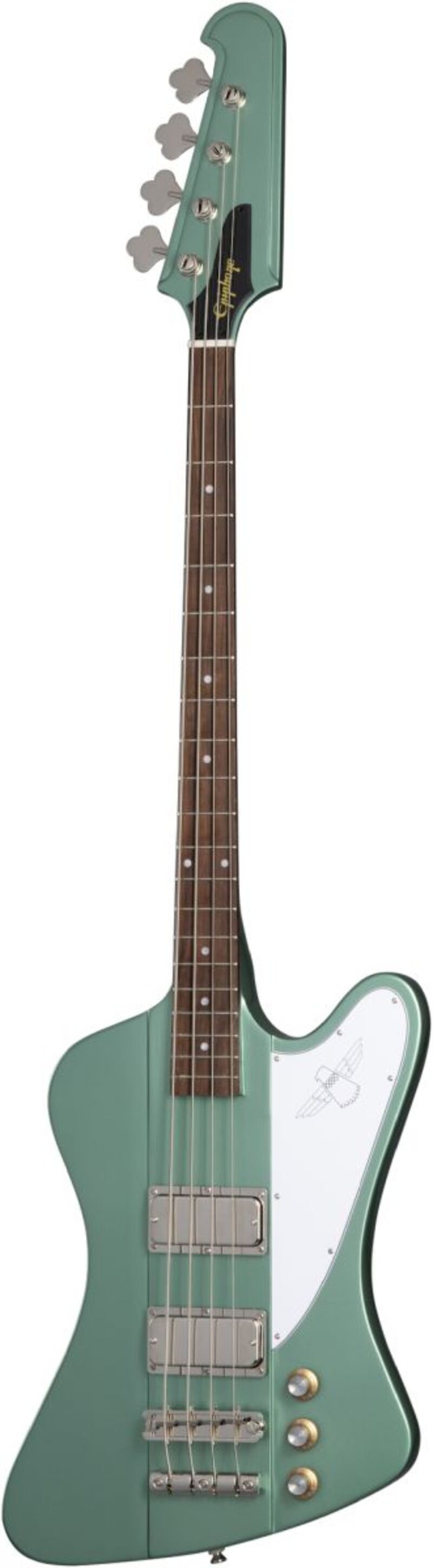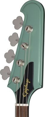 Epiphone Thunderbird '64 Inverness Green är en elbas med 9-lagers hals i mahogny och valnöt, greppbräda i Indian Laurel, två ProBucker 760 Bass humbucker-pickuper och hals i "SlimTaper"-profil.