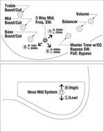 Via en push/pull EQ bypass-switch kan hela EQ-systemet kopplas ur, vilket ger ett helt passivt signalflöde direkt från pickuperna till utgången. Volym och pickupbalans kontrolleras via separata reglage.