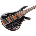 The bass is fitted with Nordstrand® Big Break pickups in both the neck and bridge positions. An Ibanez Custom 3-band EQ, optimised for these pickups, includes an EQ bypass switch and a 3-way mid frequency switch, allowing selection between 250 Hz, 450 Hz, or 700 Hz. Controls include boost/cut for bass, midrange, and treble, as well as master volume and pickup balance.
