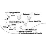 - Electronics: Ibanez Custom 3-band EQ, EQ bypass switch, 3-way mid frequency switch (250 Hz, 450 Hz, 700 Hz)