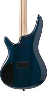 Artikelnummer 1088858Elbas, 24 band, small body, kropp i nyatoh, quilted lönntop, greppbräda i jatoba, PowerSpan Dual Coil pickups, färg: Stained Cosmic Blue Starburst