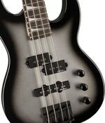 Basen är utrustad med en Jackson P-stil mikrofon i halsposition och en J-stil mikrofon vid stallet, kontrollerade via två volymreglar och en tonkontroll. Hardtail-stall med svart basplatta och Jackson-mekanik säkerställer stabil stämning. Finishen är Silverburst med svart hårdvara och svart spetsigt headstock.