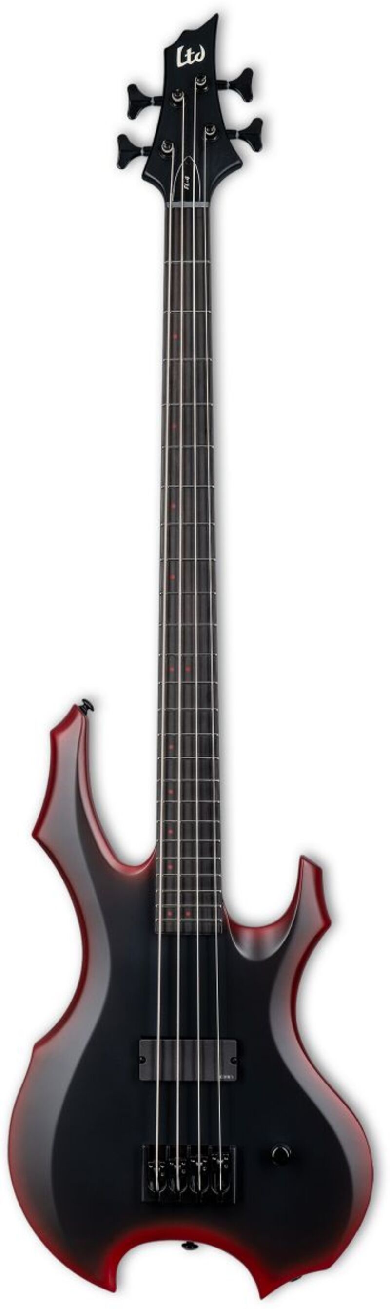 Fred Leclercq is one of the preeminent musicians and producers in the world of heavy music. Respected for his work as a guitarist in bands like Sinsaenum and Amahiru, Fred is perhaps best known as a bassist, first as a member of power metal lords DragonForce, and more recently as the current bass player for German thrash metal legends Kreator. Fred’s latest LTD Signature Series bass, the FL-4, has a unique body shape that started with the look of ESP’s Forest/F Series, but adds a diabolical cutout at the tail end. Its finish, with Satin Black that bursts to Red on the front and back edges of its body, is equally demonic. The FL-4 features neck-thru-body construction at 34” scale, pairing an alder body with an extra-thin five-piece maple/purpleheart neck and Macassar ebony fingerboard with black binding, red offset dot inlays, and 24 extra-jumbo stainless steel frets. Its sound is driven by a single active EMG 35P pickup. Other pro components of the FL-4 include a Hipshot A Style bridge and Grover mini tuners. Includes deluxe ESP hardshell case.