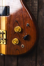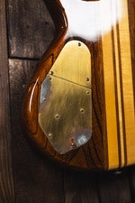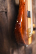 Kroppen är byggd i ask för tydlig attack och definierad botten. Greppbrädan i ebony har 240 mm radie (9,5”) och bidrar med snabb respons och distinkt artikulation. Mensuren är 864 mm (34”) och sadeln är i mässing med 40 mm bredd.