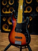 Artikelnummer 10967235-strängad passiv elbas med JJ-style pickuper i 70’s-position, Vol/Vol/Tone, hard maple-hals, lönngreppbräda med blockinlägg, 34” mensur, 45 mm sadelbredd, 18 mm strängavstånd