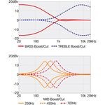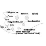 6-strängad, multi-scale, Jatoba/Walnut hals, Panga Panga greppbräda, 24 medium band, Bartolini BH2-pickuper, 3-band EQ med bypass & mid switch, Mono-Rail V stall