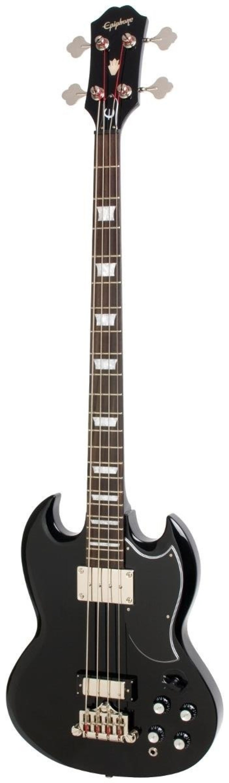 The Epiphone EB-3 solidbody Four-string bass gives you big tone and fast playability, thanks to its combination of a long-scale set-neck design, SG-style double-cutaway body, and dual-pickup configuration. The EB-3 bass's mahogany body is equipped with a heavy-duty bridge, a Sidewinder bridge pickup, and an NYT Bass mini-humbucker for maximum sustain and a range of great tones. The mahogany neck is slim and comfortable, and its rosewood fingerboard includes classy trapezoid inlays.