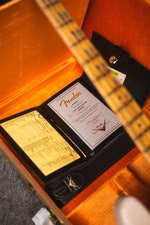 Other premium features include 7.25" radius, 20 vintage (45085) frets, vintage wiring, gold anodized aluminum pickguard, vintage-style 4-saddle bridge with threaded steel saddles, vintage-style tuning machines, bone nut, disc string tree, deluxe hardshell case, strap and certificate of authenticity.