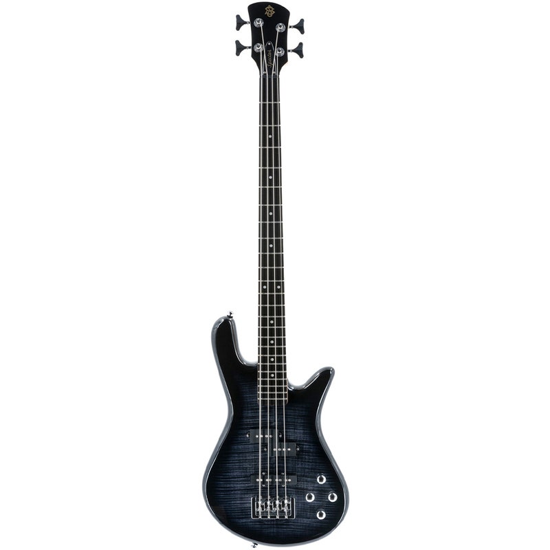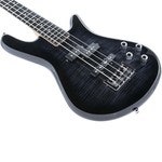 Artikelnummer 1064731Elbas, 4 strängar, kropp i ask med flammig lönntopp, lönn & padauk-hals, Amara Ebony-greppbräda, Aktiva P/J-pickuper, Black Stain finish.