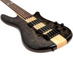 Artikelnummer 1064791Elbas, Dan Briggs signaturmodell, 5 strängar, kropp i lönn, topp i Poplar Burl, lönnhals, Pau Ferro-greppbräda, Aktiva EMG Humbucker-pickuper, Black Stain/Walnut Stain Gloss finish.