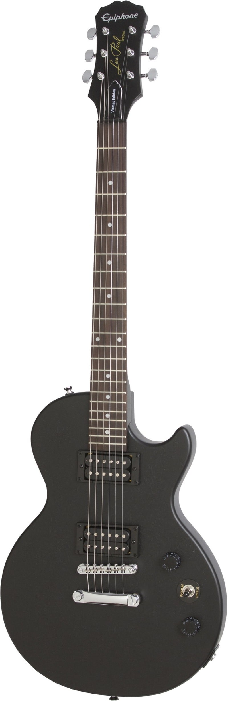 The Les Paul Special VE is powered by Epiphone Open Coil humbuckers and is available in beautiful new “Vintage Worn” color finishes including Cherry, Ebony, Heritage Cherry Sunburst, Vintage Sunburst, and Walnut. For decades, the Les Paul Special has been one of Epiphone’s best selling electric guitars. And the new Les Paul Special VE™ --inspired by the Les Paul, the greatest electric guitar in rock--continues the tradition of giving new both players and pros a real Les Paul at a price anyone can afford.