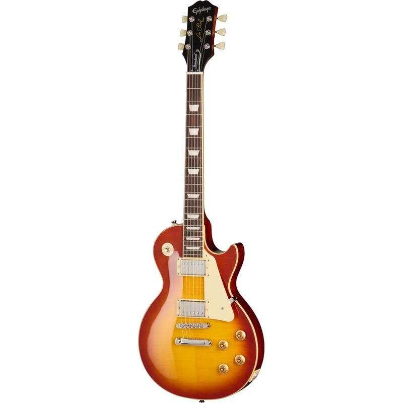 Epiphone Les Paul Standard 50s Figured Washed Cherry Sunburst är en modell i Epiphones Inspired by Gibson-serie som återskapar känslan, konstruktionen och tonen från de klassiska Les Paul Standard-gitarrerna från 1950-talet. Dessa instrument, ofta kallade “Bursts”, är bland de mest uppskattade vintagegitarrerna i världen och har använts på otaliga inspelningar och konserter.