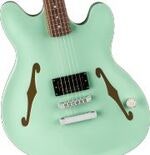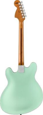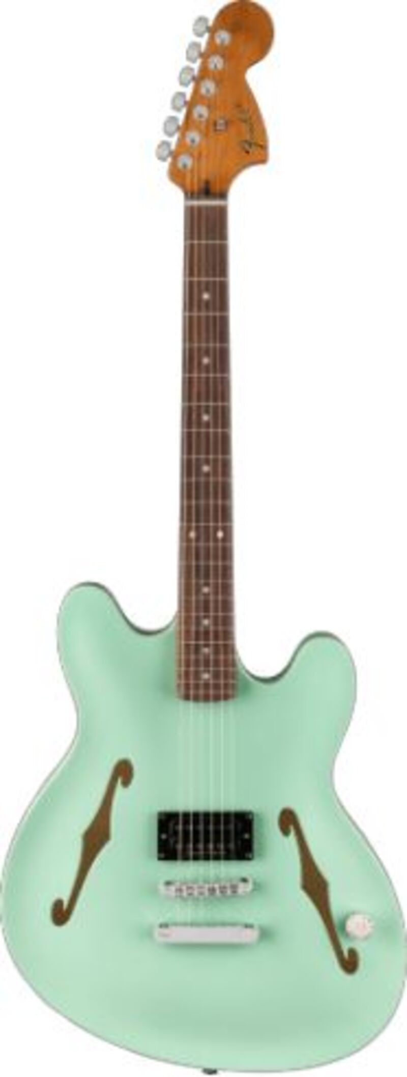 Tom DeLonge Starcaster är designad med en förskjuten semi-hollow kropp och har en Seymour Duncan SH-5 Duncan Custom humbucker pickup för turboladdad ton, som är perfekt för chunky power chords och krispiga riff. Den strömlinjeformade kontrollinställningen som består av en enda huvudvolym, kombinerad med en diskantavluftningskrets bevarar gitarrens naturliga high-end, vilket ger rena toner och chim-y edge-of-breakup-toner. Den bekväma moderna "C"-halsen har medelstora jumboband på en greppbräda i rosenträ med en radie på 12 tum för en modern känsla. Gitarren har Fender-locking tuners för säker stämningsstabilitet och helt justerbar brygga med stoppslut för ett klassiskt utseende samt överlägsen inställningsjustering. DeLonges ursprungliga signaturkonstverk finns på baksidan av headstocken och även en specialtillverkad halsplatta. Oavsett om du är ett Blink-182-fan som vill få fram bandets signaturljud, eller helt enkelt letar efter ett unikt instrument, är Tom DeLonge Starcaster ett orginellt tillskott för alla samlingar.