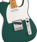 Artikelnummer 1096041Telecaster-modell i late ’50s-utförande, al- eller askkropp i Sherwood Green Metallic, 1-delad lönnhals med 7,25" radie och Soft “V”-profil, Vintage Tall-band, två Vintage-Style Late ’50s Tele® single-coils,