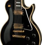 Gibson presenterar 1957 Les Paul Custom med eleganta linjer och Ebony/Pearl/Gold-estetik. Den har en kropp uthuggen av ett enda stort stycke massiv mahogny, vilket är unikt bland Les Paul-modellerna. Den mörka tonen på kroppen matchar perfekt med dess starkt klingande greppbräda i Ebony. En kombination av gitarrhantverk, design och ton. Inspirerad av den ursprungliga "Black Beauty" för denna '57 Les Paul Custom Reissue. Ett harshell case ingår.