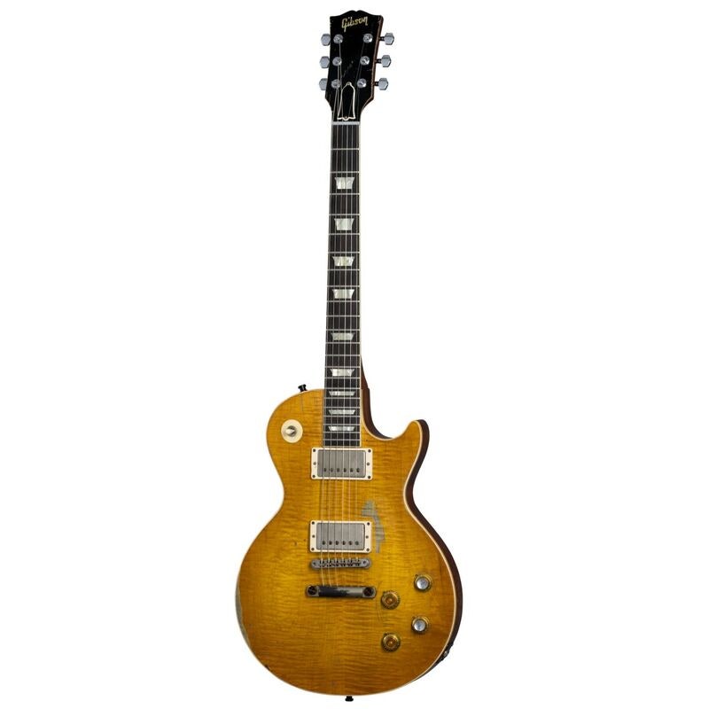 The story of “Greeny” is shrouded in mystery, but few guitars are as illustrious. Greeny is one of the most iconic original Les Paul Standards ever made, with a unique sound as recognizable as the guitar itself. Previously owned by Peter Green, it was used throughout his time with Fleetwood Mac and later sold to Gary Moore, who used it for three decades with Thin Lizzy and as a solo artist. Now owned by Kirk Hammett, Greeny has passed through the hands of three legendary guitarists. Its distinctive sound is partly from the out-of-phase middle switch position due to the neck pickup’s reversed magnetic polarity. The Kirk Hammett "Greeny" 1959 Les Paul Standard from the Gibson Custom Shop is artfully aged to match the original by the Murphy Lab and was inspired by this legendary guitar. With its Indian rosewood fretboard, it gives players around the world the opportunity to experience some of the magic of "Greeny" for themselves. A brown/pink Lifton™ reissue 5-latch case is also included.