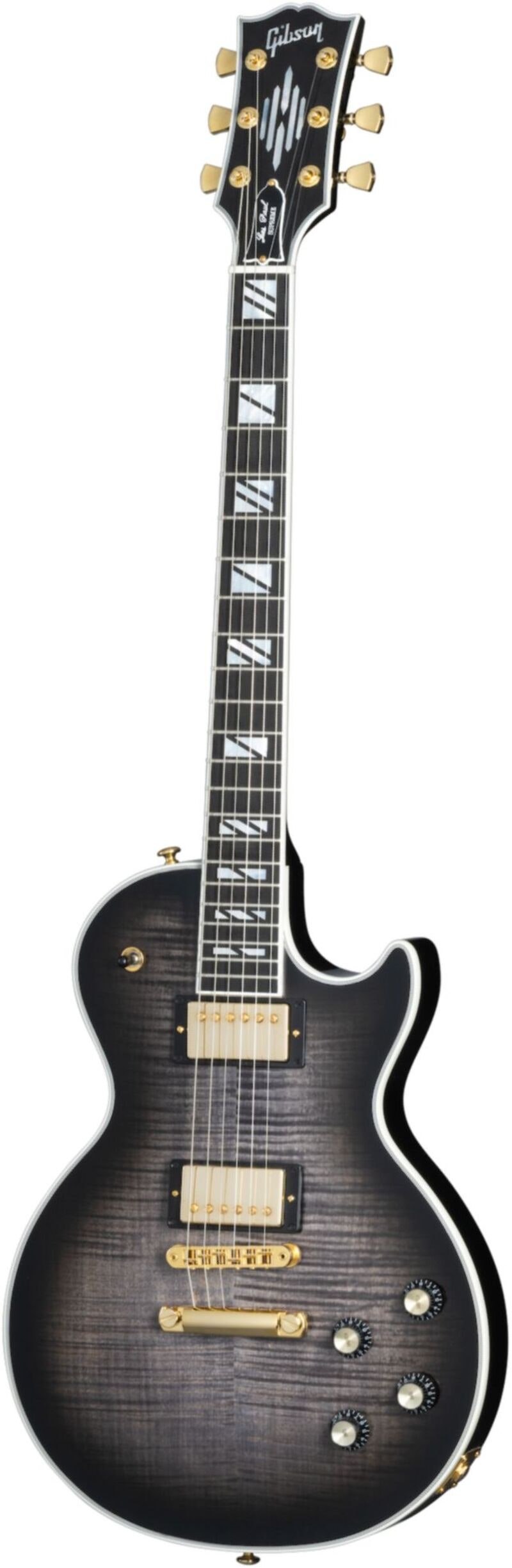 Gibson Les Paul Supreme återgår till den klassiska designen som gjorde den relevant. Med förbättrade funktioner får den all möjlighet att sticka ut i sortimentet. Den har en vacker AAA-figurerad lönntop på en mahoganykropp med ultramodern viktavlastning. Mahoganyhalsen har en greppbräda i ebenholts med compound radius och Super Split Block inlägg av pärlemor. Halsen har en modern contoured heel för exceptionell tillgång till de övre banden och huvudet är prytt med slående nya pärlemorinlägg inspirerat av Gibsons arkiv från 40-talet. De dubbla Burstbucker Pro mikrofonerna är kombinerade med push/pull volym och tonkontroller för flexibel coil cap, phase och Pure Bypass switching. De tre härliga ytorna är elegant framhävda med hårdvaror i guld. Detta gör att den inte bara låter ljuvligt och blir i högsta grad flexibel som instrument men den blir även en exceptionellt vacker och modern rockmaskin. Ett hardshell case ingår.