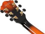 Ibanez ASH300-TBC (Tobacco Brown) är en semi-hollow-body elgitarr med genomgående mittstock, byggd för att fungera stabilt även vid hög volym. Konstruktionen ger en tydlig grundton och hjälper till att hålla återkoppling nere, vilket gör den användbar både för rena ljud och mer överstyrda inställningar.