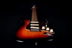 Strängarna är fästa via ett stall av ben, kromade stämskruvar och en synkroniserad tremolo. Gitarrens stilrena design förstärks av ett plektrumskydd i imitation av sköldpaddsmönster.